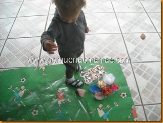 Como a brincadeira sensorial é sempre algo profundo e meditativo, resolvi guardar o  quadro para que pudesse livremente brincar por mais tempo com a  terra, folhas, cascas, etc.